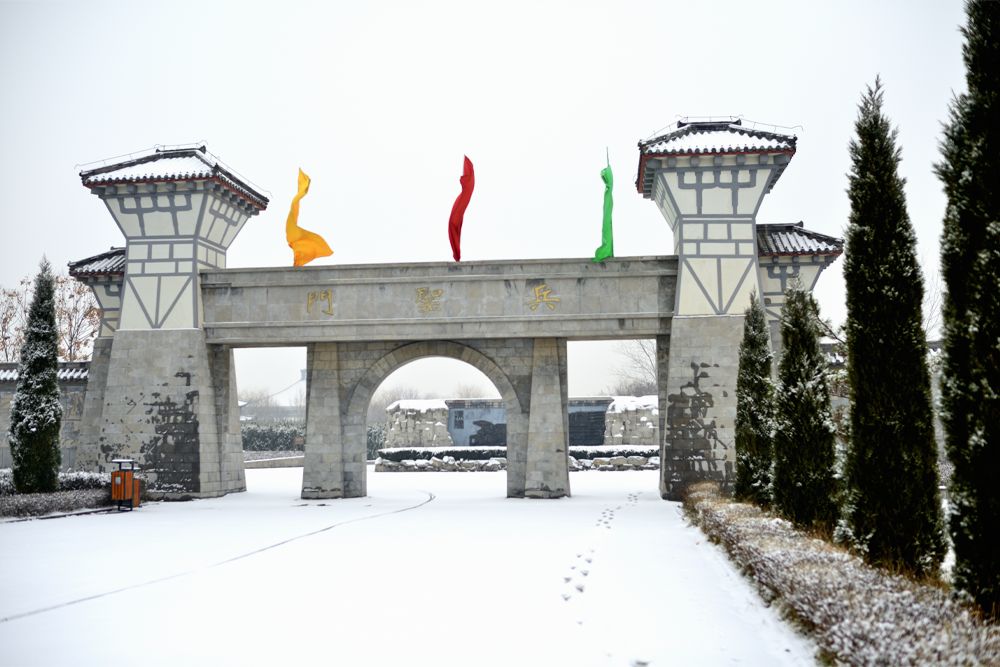 通往孫臏紀(jì)念區(qū)的主要出入口,是座古樸的漢代建筑,進門后看到的“屏墻”也叫(迎門墻),墻體的正面是用青石雕刻的戰(zhàn)神,在這里體現(xiàn)了孫臏的戰(zhàn)爭觀:孫臏曰:“戰(zhàn)勝而強立”也就是說一個國家必須要在戰(zhàn)爭中取勝方能立足,而這在當(dāng)時也是最現(xiàn)實的問題。旁邊有座山叫做“冷山”那里曾經(jīng)是孫臏放牧的場所。