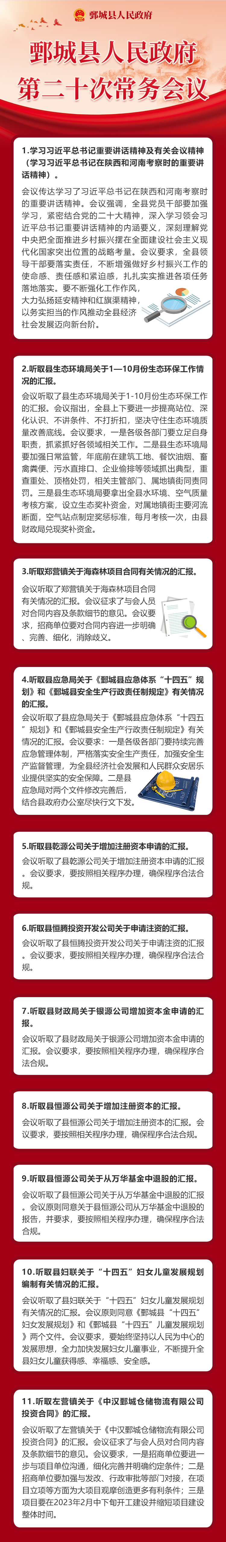 標(biāo)  題: 2022年第20次縣政府常務(wù)會議的解讀 發(fā)布日期: 2022 年 11 月 26 日
