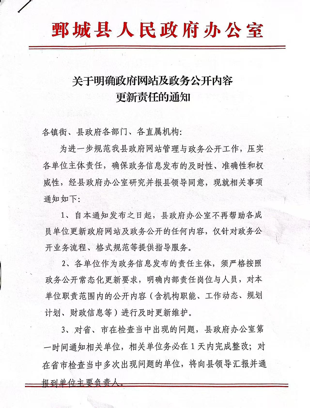最后政務公開科尚士成同志宣讀了《鄄城縣人民政府辦公室關于明確政府網站及政務公開內容更新責任的通知》,進一步壓實各單位主體責任,確保政務公開內容及時、準確、全面。同時,對高質量發展考核中政務公開部分的考核標準進行了詳細解讀,明確考核指標與評分細則,引導各單位以考核為導向,切實提升政務公開工作質量。