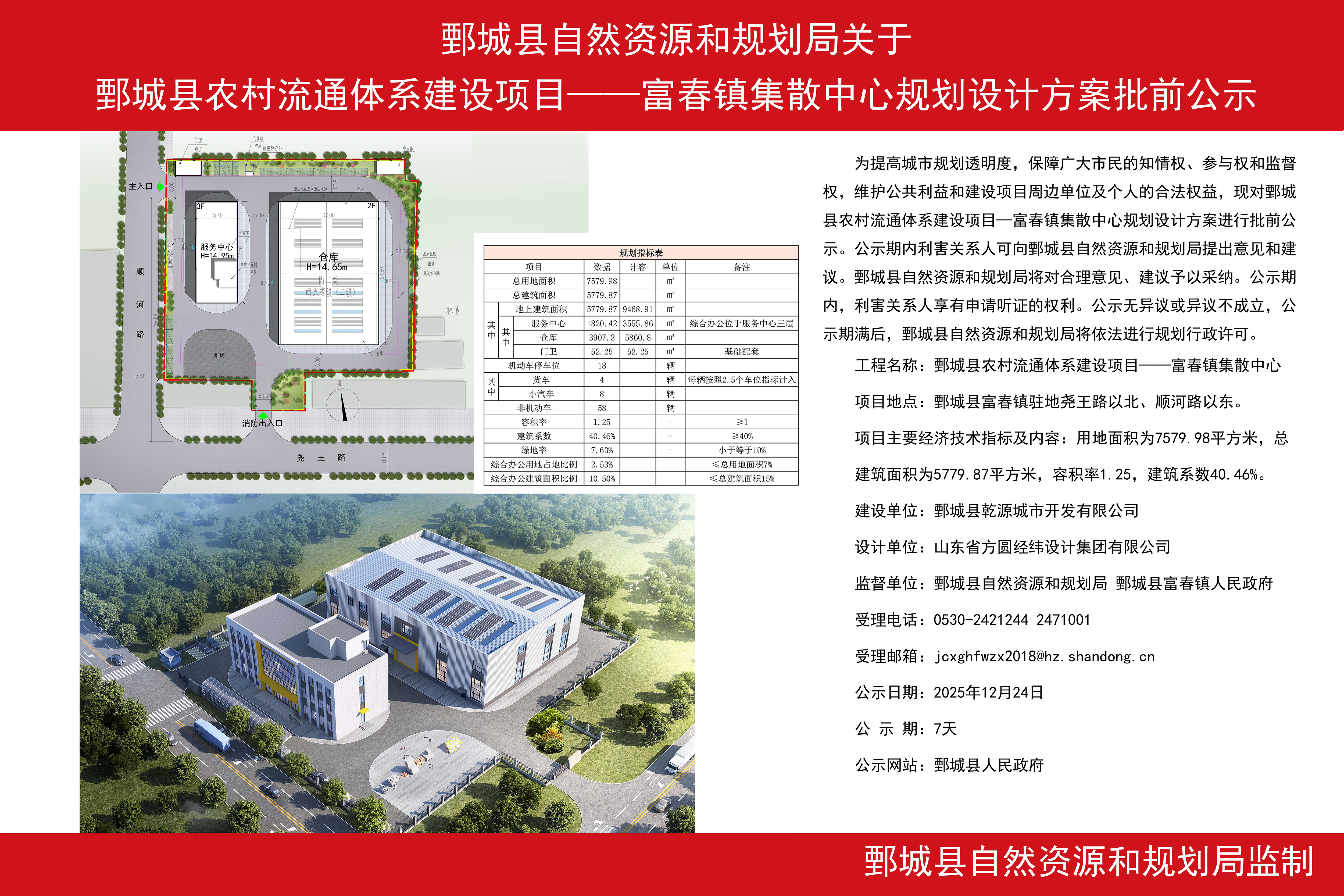 鄄城縣自然資源和規劃局關于鄄城縣農村流通體系建設項目——富春鎮集散中心規劃設計方案批前公示